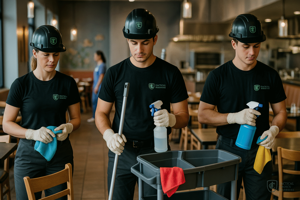 A clean kitchen isn’t just about appearance — it’s essential for food safety, hygiene, and passing health inspections. At Tactical Choice Cleaning LLC, our Restaurant & Kitchen Cleaning services are designed to maintain spotless dining areas, sanitized kitchens, and compliant food-prep environments. From quick-service restaurants to commercial kitchens, we deliver cleaning that meets the highest safety and sanitation standards.